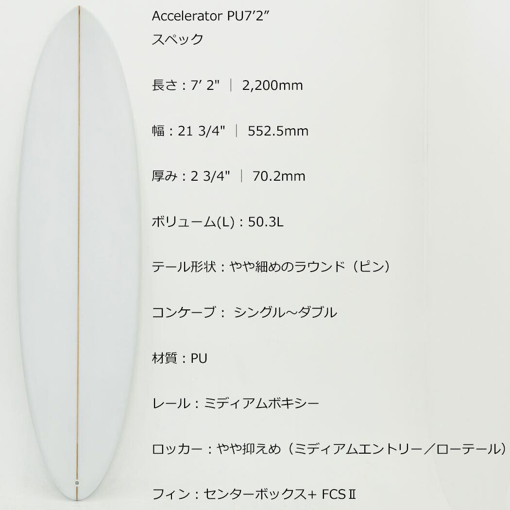テールロッカーはテイクオフを邪魔せず、なおかつしっかりと上下の動きにも反応してくれる絶妙なバランスで設計。やや細めのラウンドテールを組み合わせることで、コンディションを選ばず、膝〜肩くらいまでの波でも十分楽しめます!!