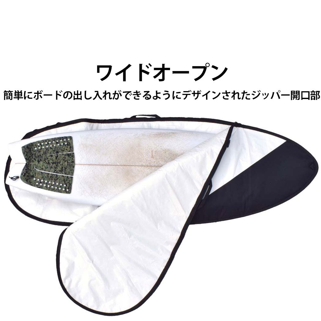 最大の魅力は、その手軽さと使いやすさにあります。軽量な設計ながらも大切なボードをしっかり保護してくれるため、日々のちょっとしたトリップや自宅での保管に最適です。ノーズからテールにかけて幅の広いアウトラインを採用しているため、厚みのあるソフトボードなど、様々な形状のボードをスムーズに収納できるのも大きな利点です。