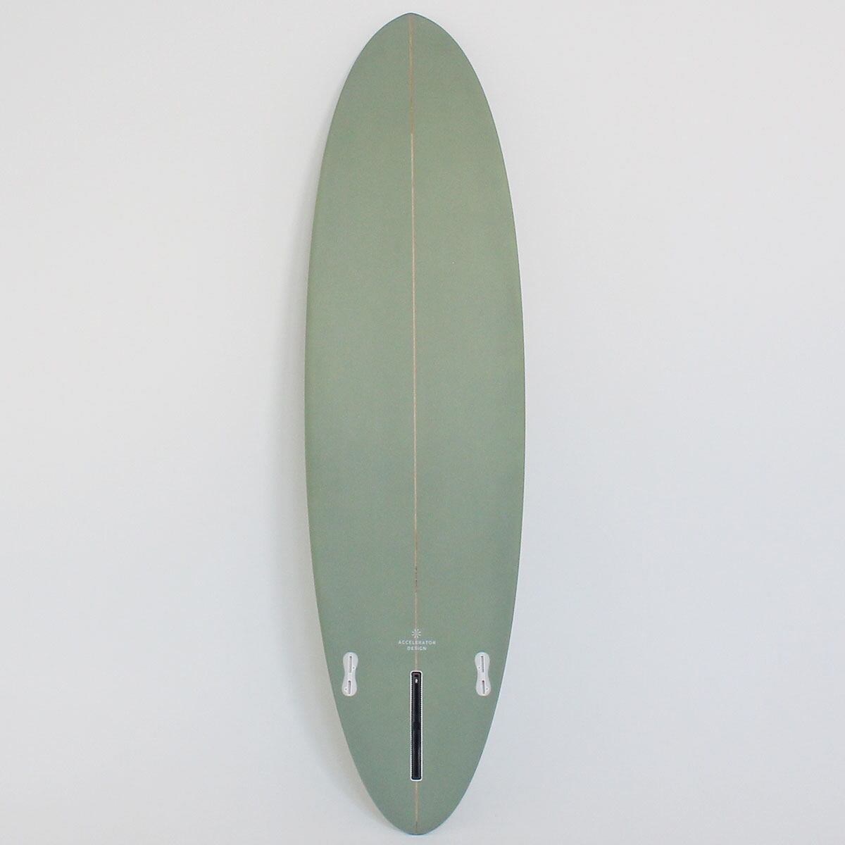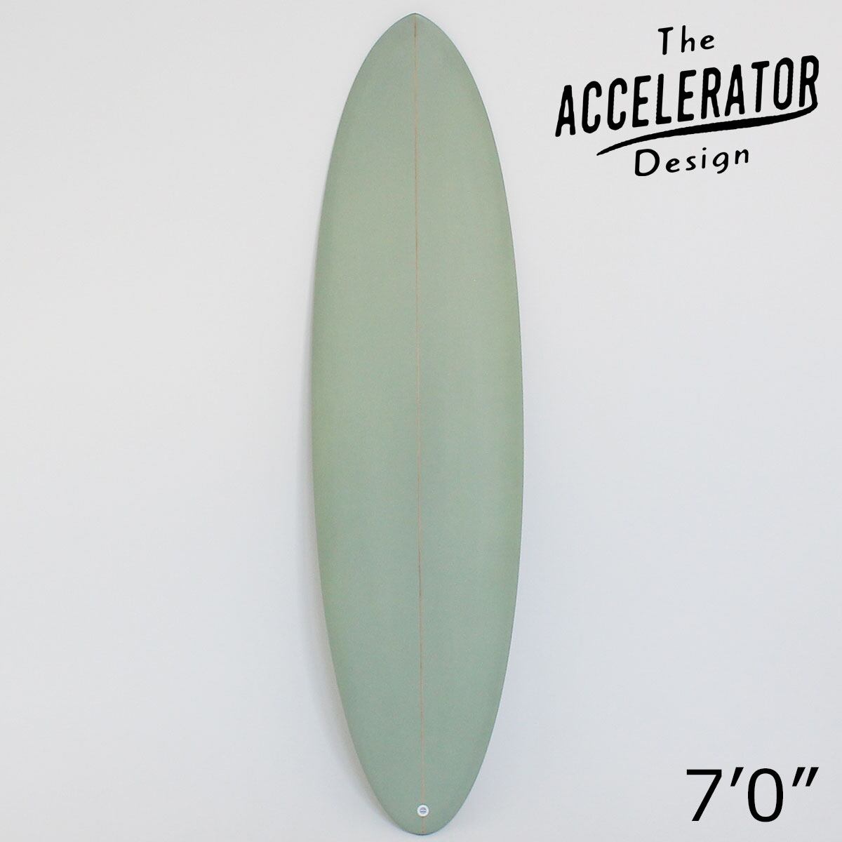 The Accelerator Design PU 7'0" MID HOMY モスグリーン シングルボックス FCS2ツインフィン ラウンドピンテール アクセルレーター サーフボード デッキコンケーブ フィン標準セット 佐川急便で自宅まで配達 北海道および沖縄他離島は別途送料