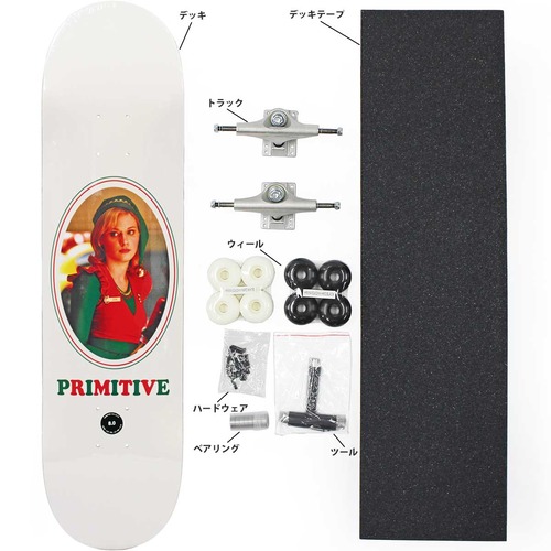 こちらは、アメリカで2003年公開の人気コメディ映画「elf サンタの国からやってきた」コラボのプリミティブデッキ(板)に当店オリジナルパーツを使ってショップ内で組み立てる本格的な組み立てコンプリート(完成品)スケボーになります。