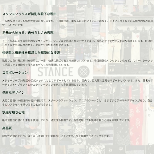 極上の履き心地と耐久性を備えたスタンスソックス