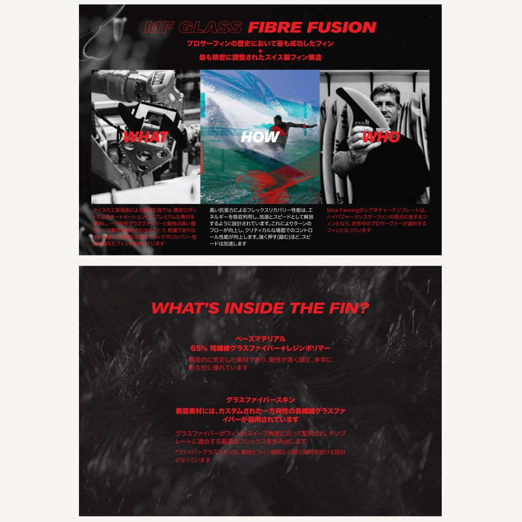 「これは成形された高性能フィンにおける精密工学の新たなベンチマークになるでしょう。このフィンは十分な硬さを備えているため、思い切りプッシュしても問題なく、しかも私の好むサーフスタイルに重要なフレアとリリースを実現してくれるのです」 MICK FANNING