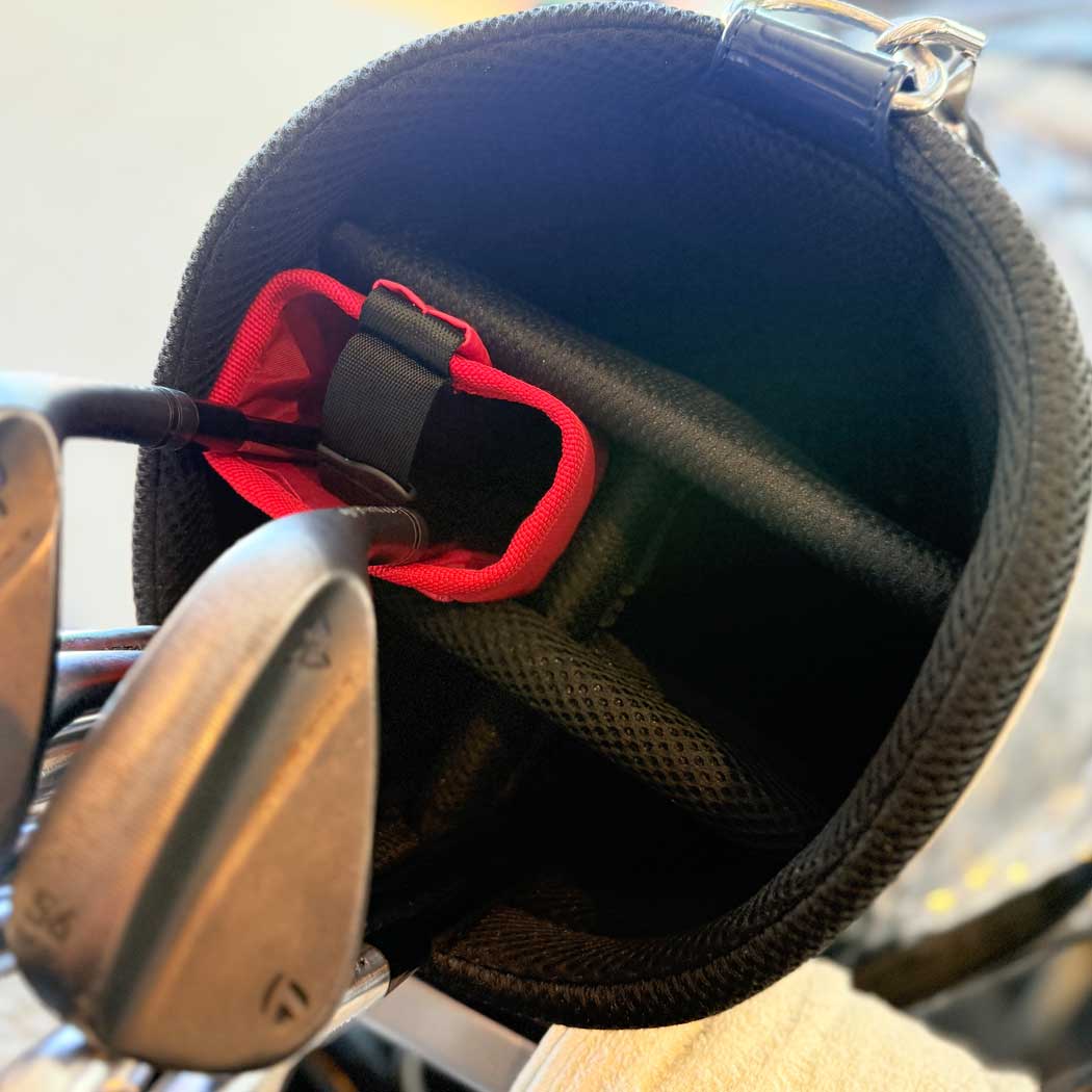パターやウェッジなど、グリーン周りや2打目以降によく使うクラブを5本前後収納可能。うっかり置き忘れ対策にも有効