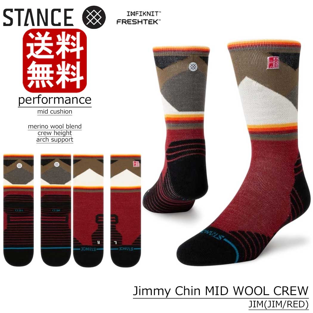Stance Jimmy Chin Mid Crew Merino Wool Blend with INFIKNIT スタンスソックス ジミー チン ミッド メリノウール ブレンド インフィニット 靴下 25.5-29.0cm ギフト 男性 彼氏 プレゼント 贈り物 ゴルフ ゴルフソックス コンペ 景品 JIM/RED L25.5-29cm