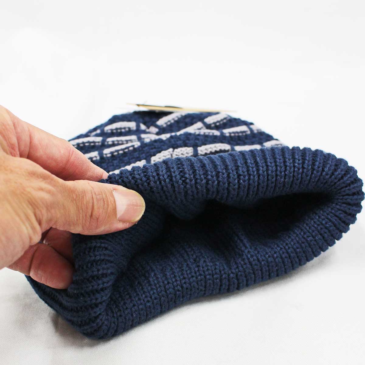 アウトドア由来の太い編み目と、やや厚手でざっくりとした生地感が、どこか懐かしいヴィンテージムードを感じさせます。普通深さのミドル丈シルエットで被りやすく、厚手のリブ編みカフはフィット感と保温性を両立。サイドにあしらわれたクリップラベルが、さりげないブランド感を演出します。