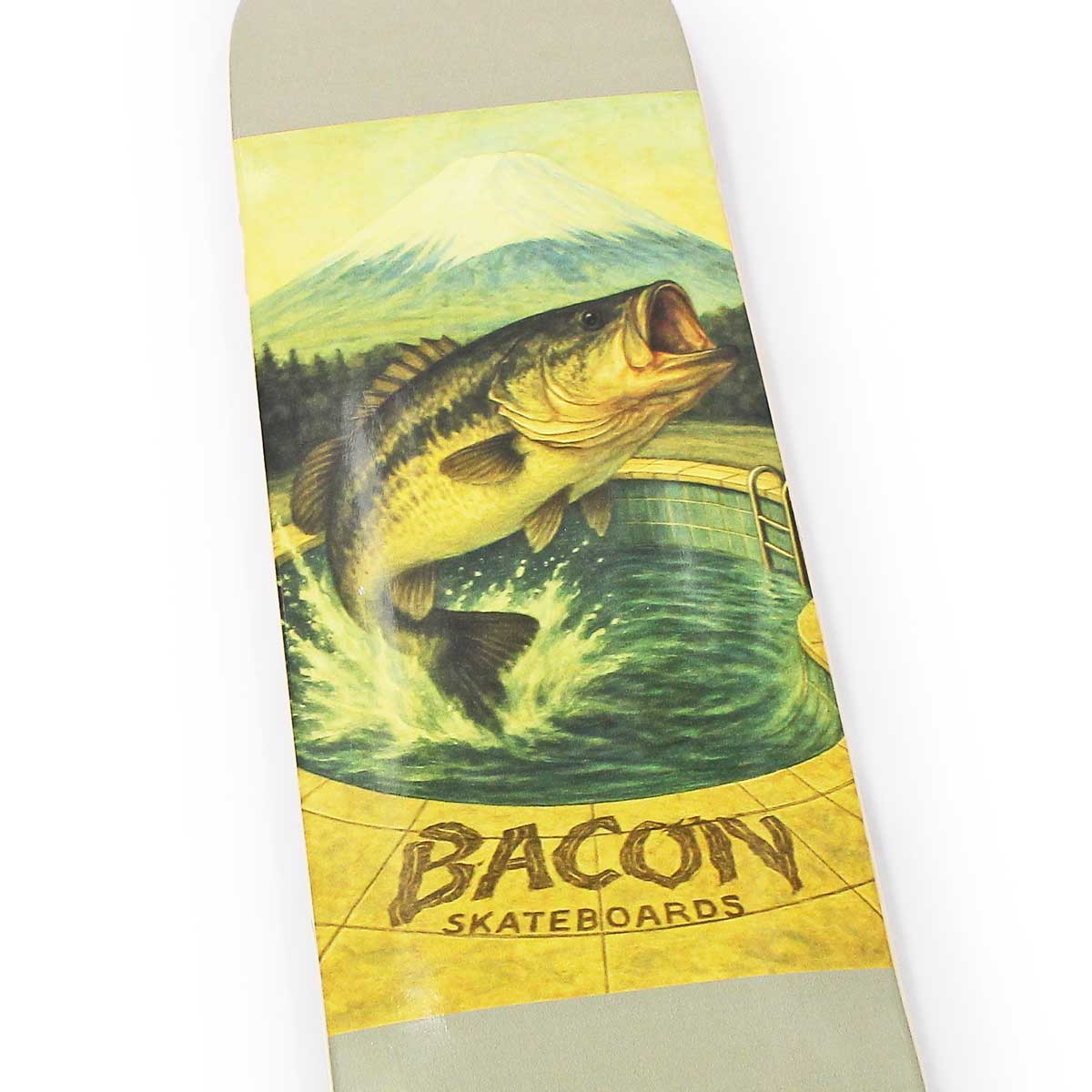 日本発バスフィッシングチーム「BROFANGST」とBACON SKATEBOARDSによる異色のコラボデッキ。釣りカルチャーとスケートカルチャーが融合した、バスグラフィックが特徴の限定モデルです。