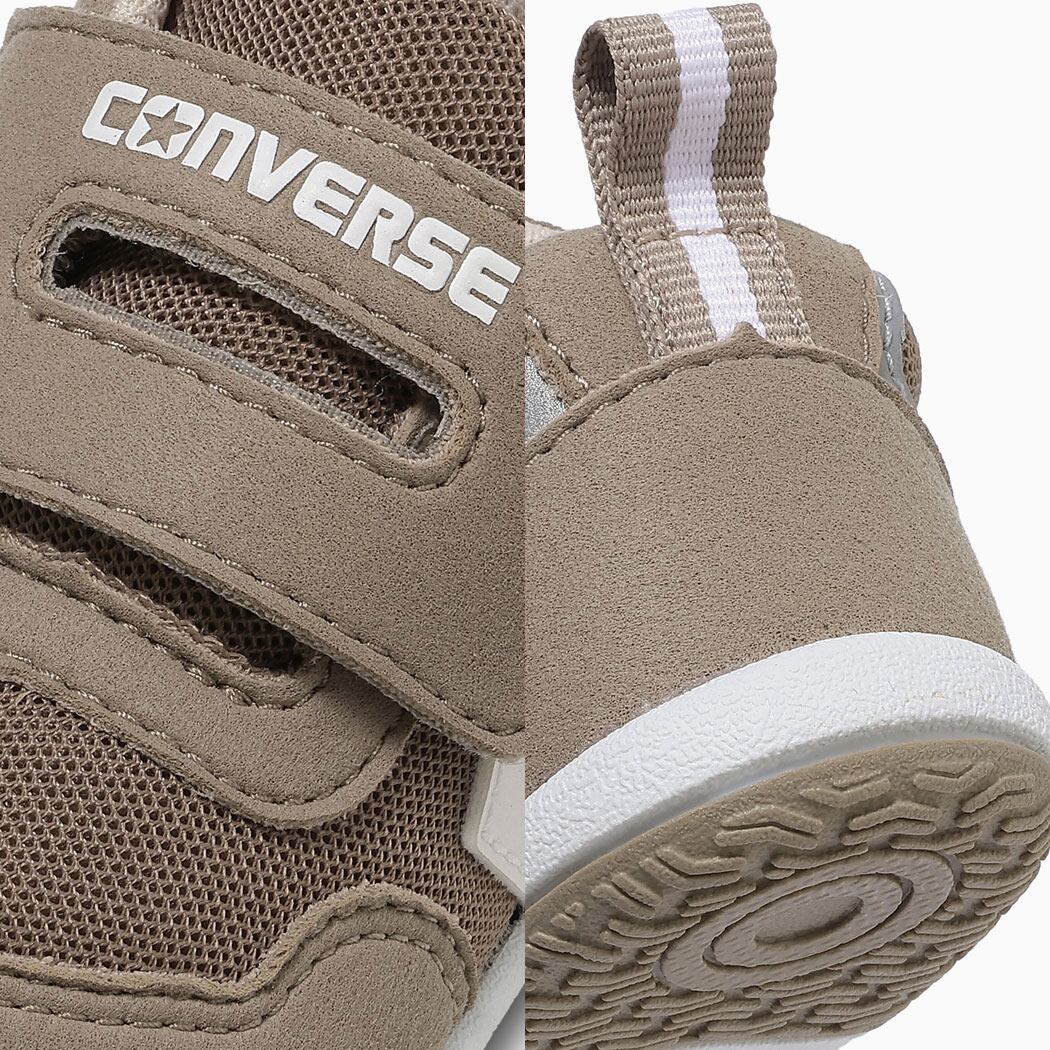 まだ足元が不安定なベビーのあんよを優しくサポートする、コンバースのキッズシューズ「ミニ RS」。