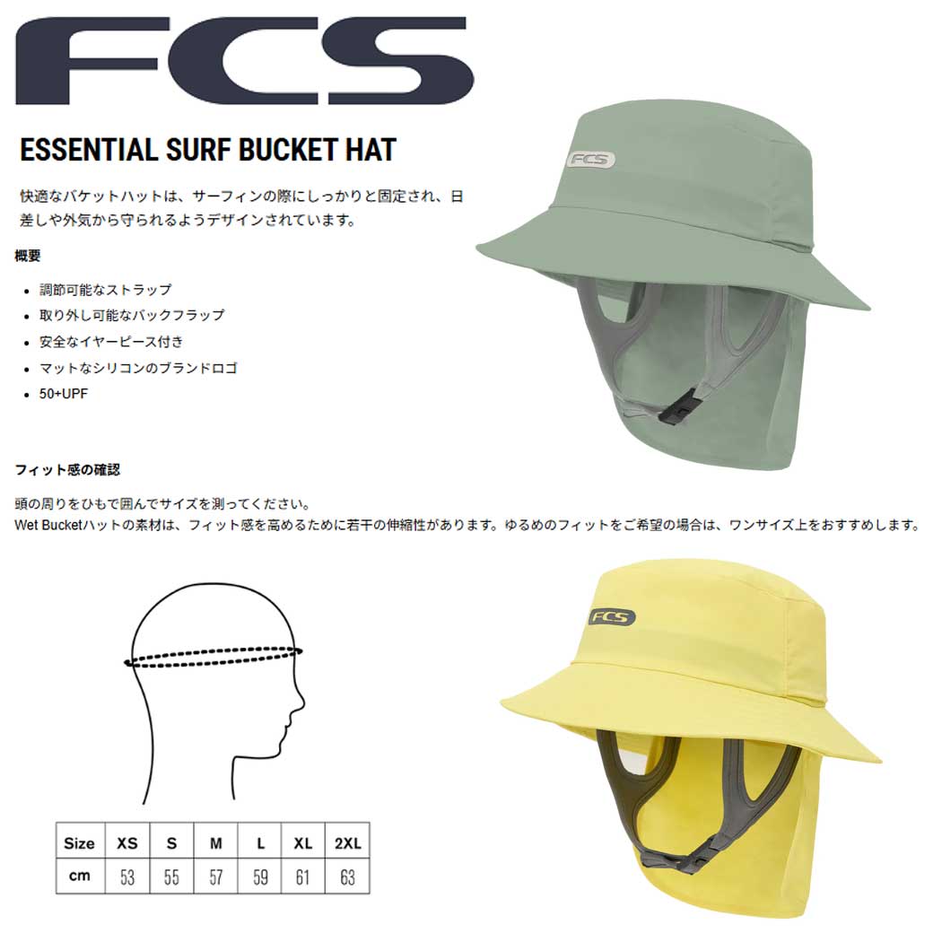 FCS Essential Surf Bucket Hat エフシーエス エッセンシャル バケットハット キャップ 帽子 ハット サーフハット 日焼け対策 50+UPF Icebgrn L/59