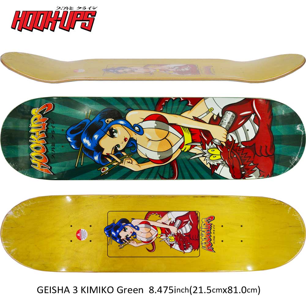 スケボー スケート デッキ スケートボードHOOK UPS フック アップGEISHA 3 KIMIKO Green 8.475inchストリート オシャレ ファッション アイテム ジェルミークライン