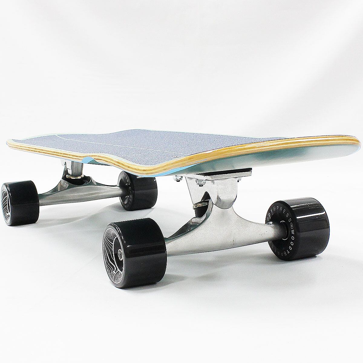 カービング・シリーズの中で最も短いモデルの28インチ。キッズから大人まで幅広くカバーする28インチモデルは、乗り方次第でサーフィンの陸上トレーニングだけでなく、海沿いや街中をクルージングできる1台。その長さや程よいコンケーブ、カービングトラックのコントロール性など、サーフィンのイメトレ&クルーザーとしての心地よさの両方を合わせもった万能モデルです。